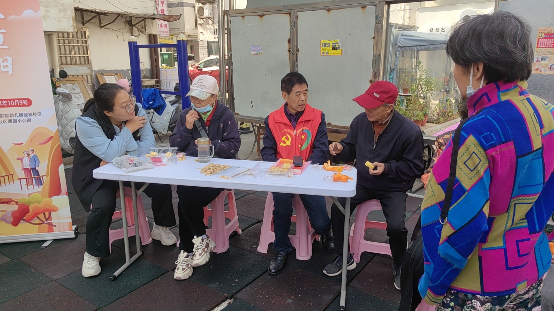 品糕点,邻里叙重阳。各式各样的重阳糕、香气扑鼻的瓜子、黄橙橙的橘子,摆满活动桌面。老人们围桌而坐,一边品尝着糕点,一边与老邻居及离退休支部的党员聊着家常里短,感受邻里温情。 “王奶奶,你最近腿脚怎么样---”、“陈书记,昨天离退休支部的老党员张主任,在我那喝茶呢”---初升的太阳映照着大家欢乐的笑容,党群同心、邻里守望,让老人们感受到社区关爱的同时,也增强了他们的归属感和幸福感。
